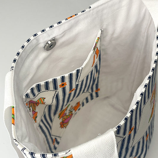 Medium Navy Flowers Tall Bag