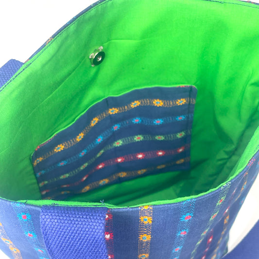 Large Navy Flowers Tall Bag